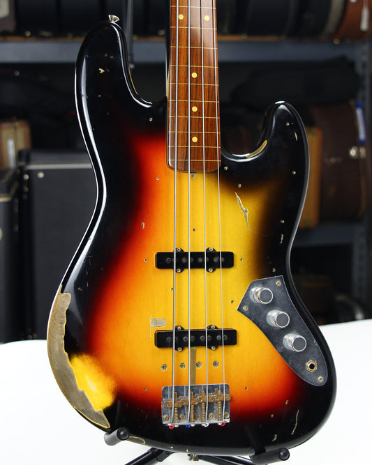2006 Fender Custom Shop Jaco Pastorius Heavy Relic Jazz Bass Fretless Guitar - Sunburst, EXOTIC FINGERBOARD!