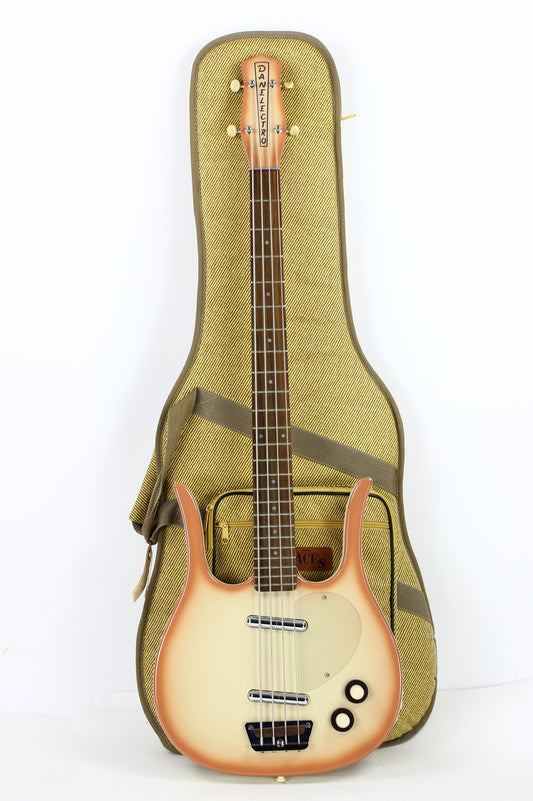 c. 1990s Danelectro Longhorn Bass Guitar Reissue Korea Short Scale Lipstick, Stacked Knobs