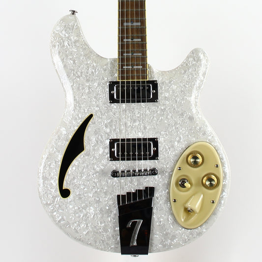 Italia Rimini 6-String White Pearloid, Semi Hollowbody Electric Guitar, Trev Wilkerson Design