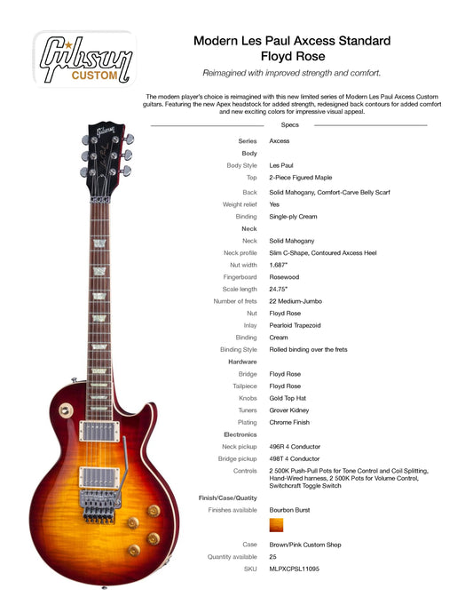 2017 Gibson Custom Shop Modern Les Paul Axcess Standard Floyd Rose Bourbon Burst Flametop!