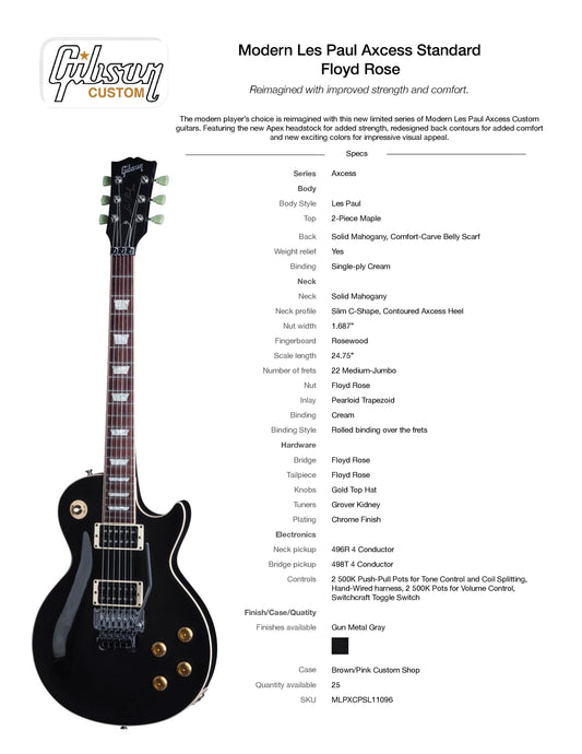 2017 Gibson Custom Shop Modern Les Paul Axcess Standard Floyd Rose Gun Metal Gray Rosewood