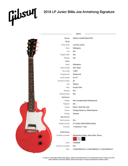 MINT 2018 Gibson Limited Edition Les Paul Jr. Billie Joe Armstrong Junior - Maraschino Cherry