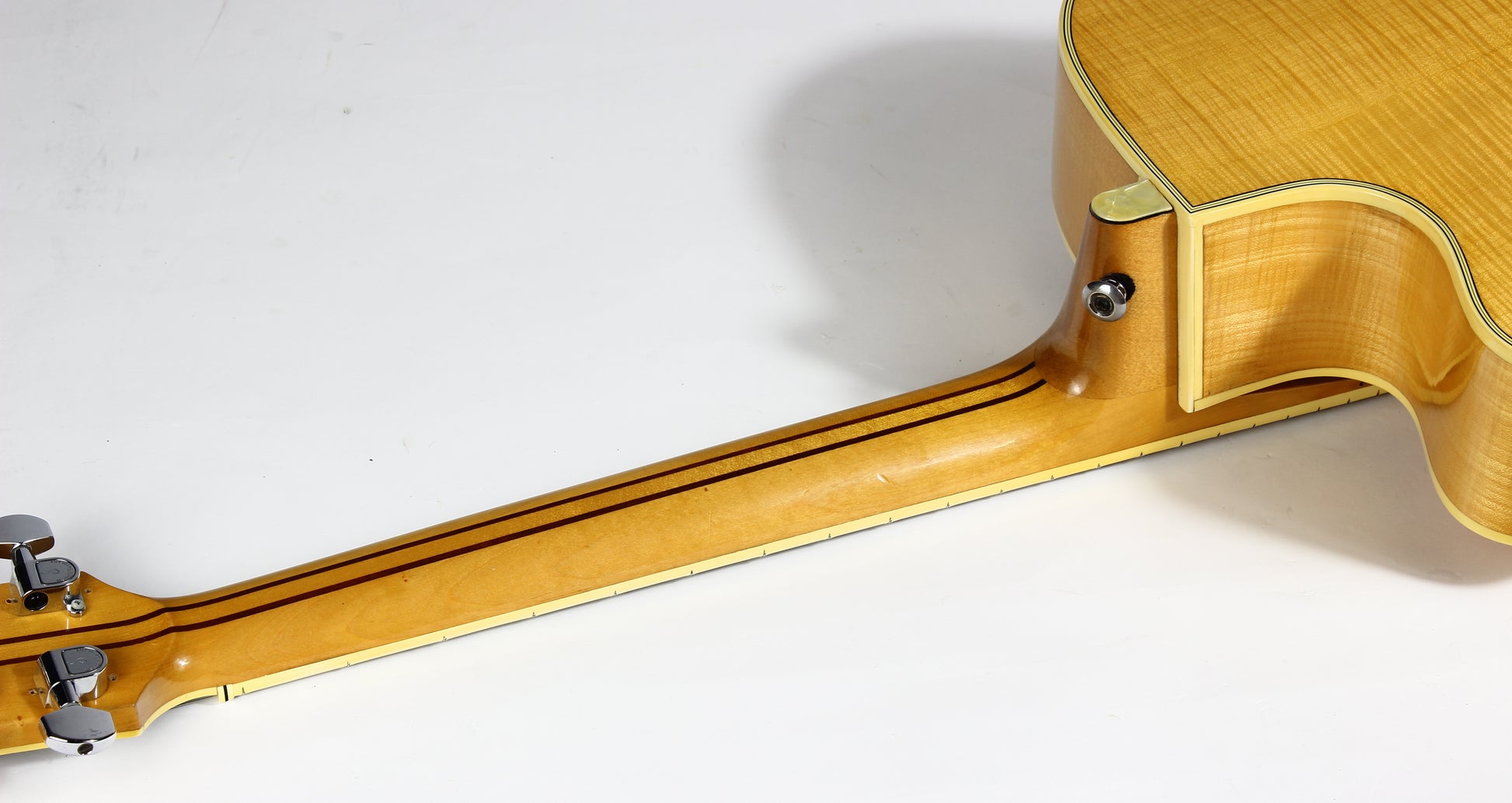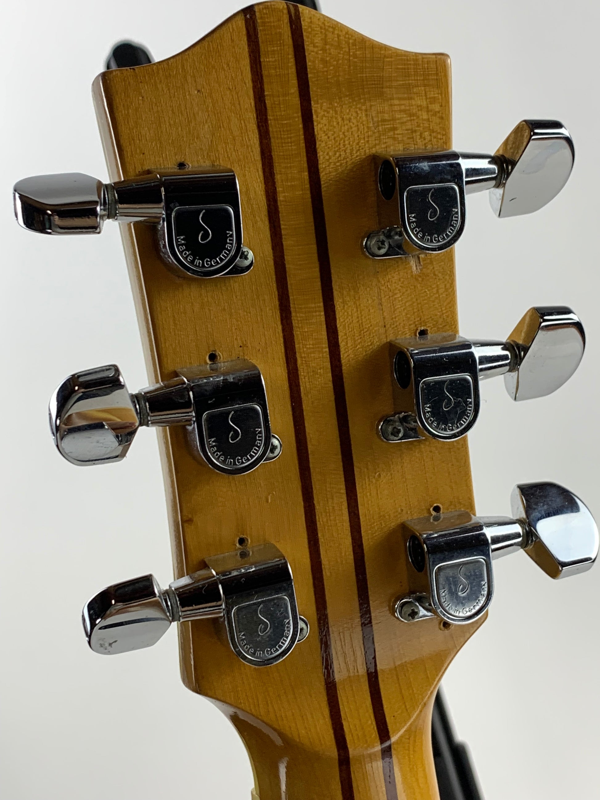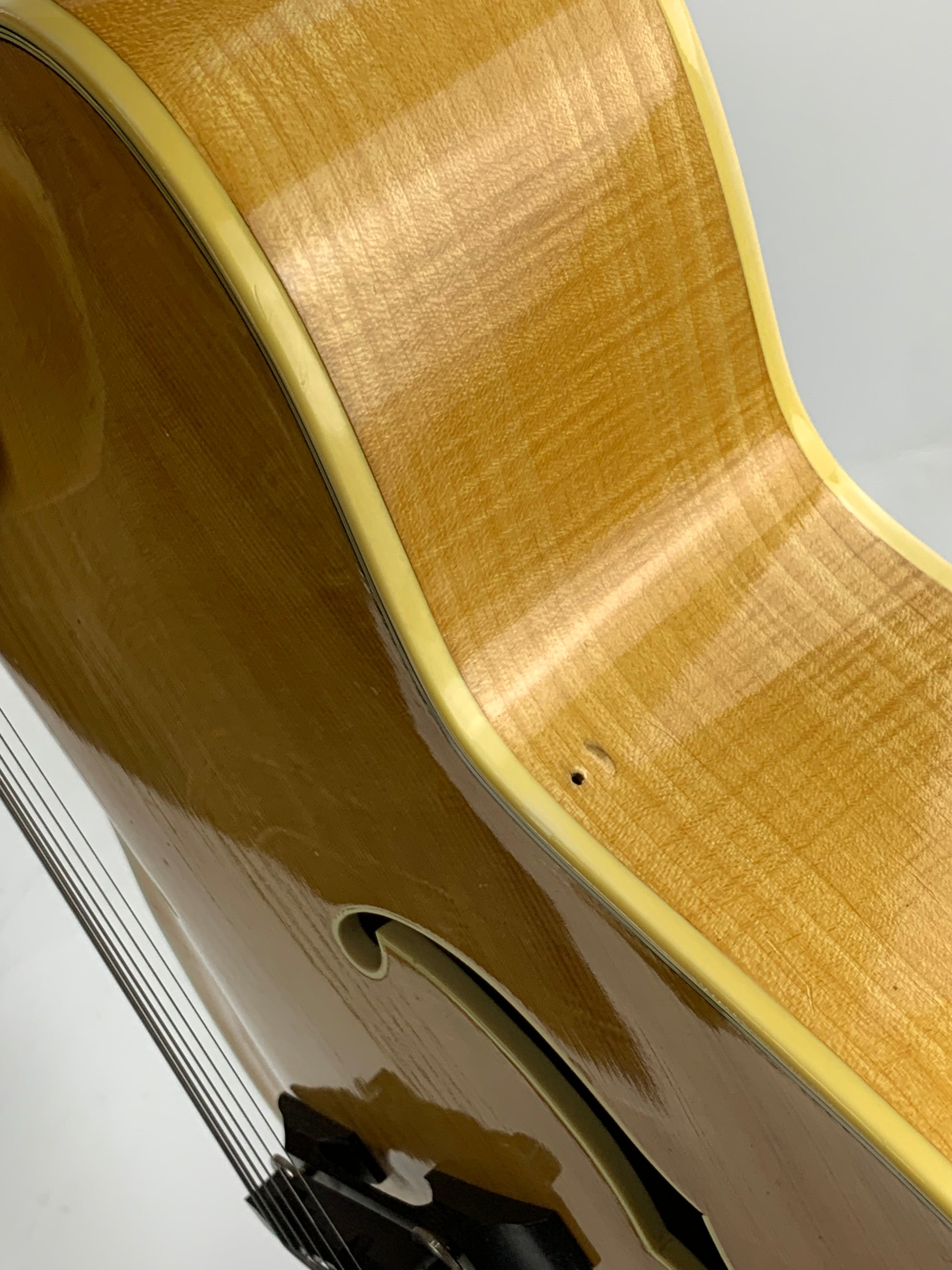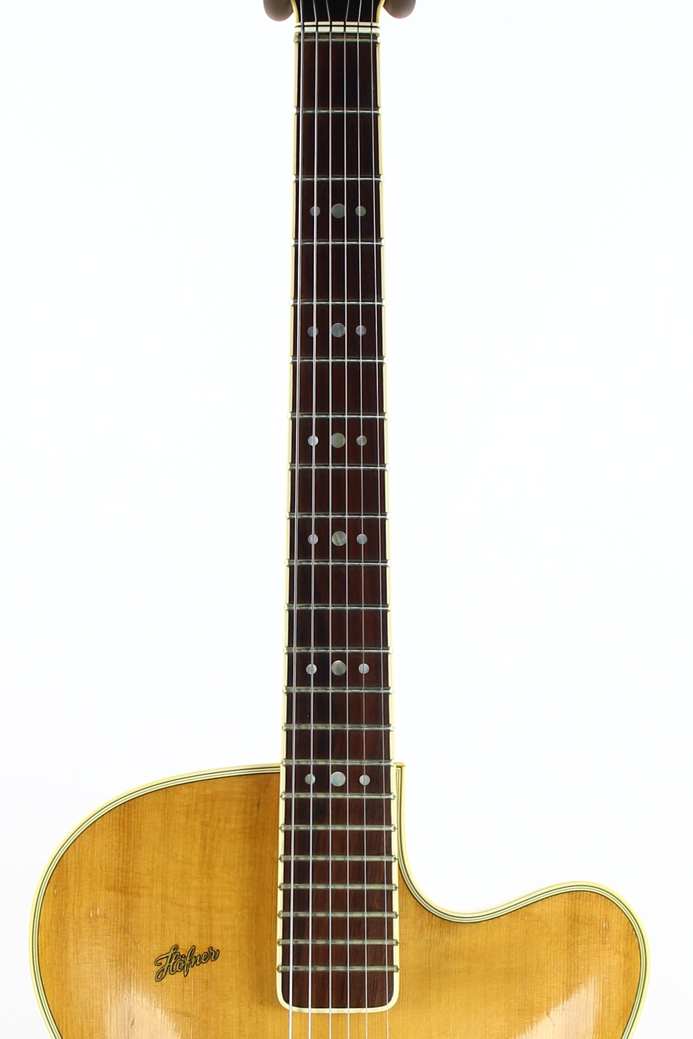 Condition: The guitar is pretty clean considering it’s 70 years old! Light dings and scratches all around. Nothing too bad. Still in very good plus condition. Action is low and it plays well. The bridge is not original and not the same radius so it would benefit from a correct bridge. It had a floating pickup at one point and the end pin jack is still present should you want to add one again. These didn’t have adjustable truss rods but the neck only has pretty minimal relief even with the flat wounds. Upgraded German Schaller tuners.