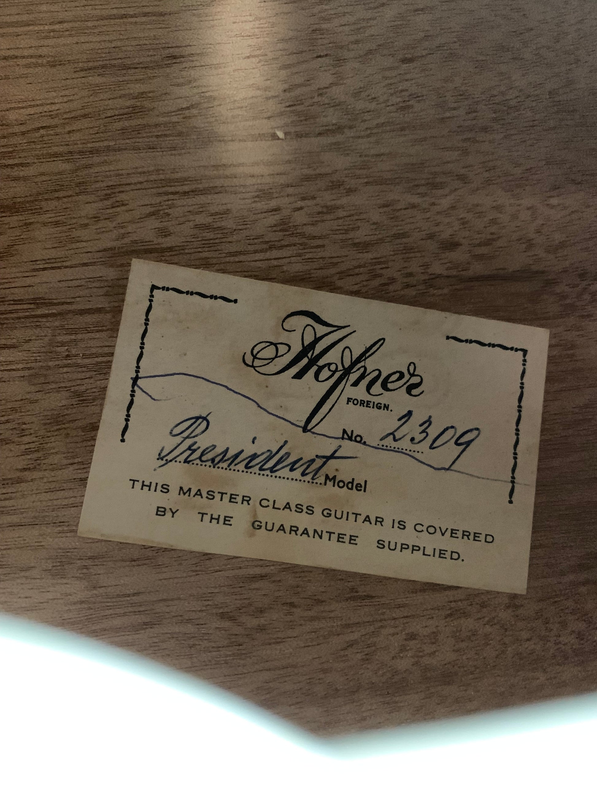 1955 Hofner President Masterclass Fine Archtop Guitar Made in Germany | Natural