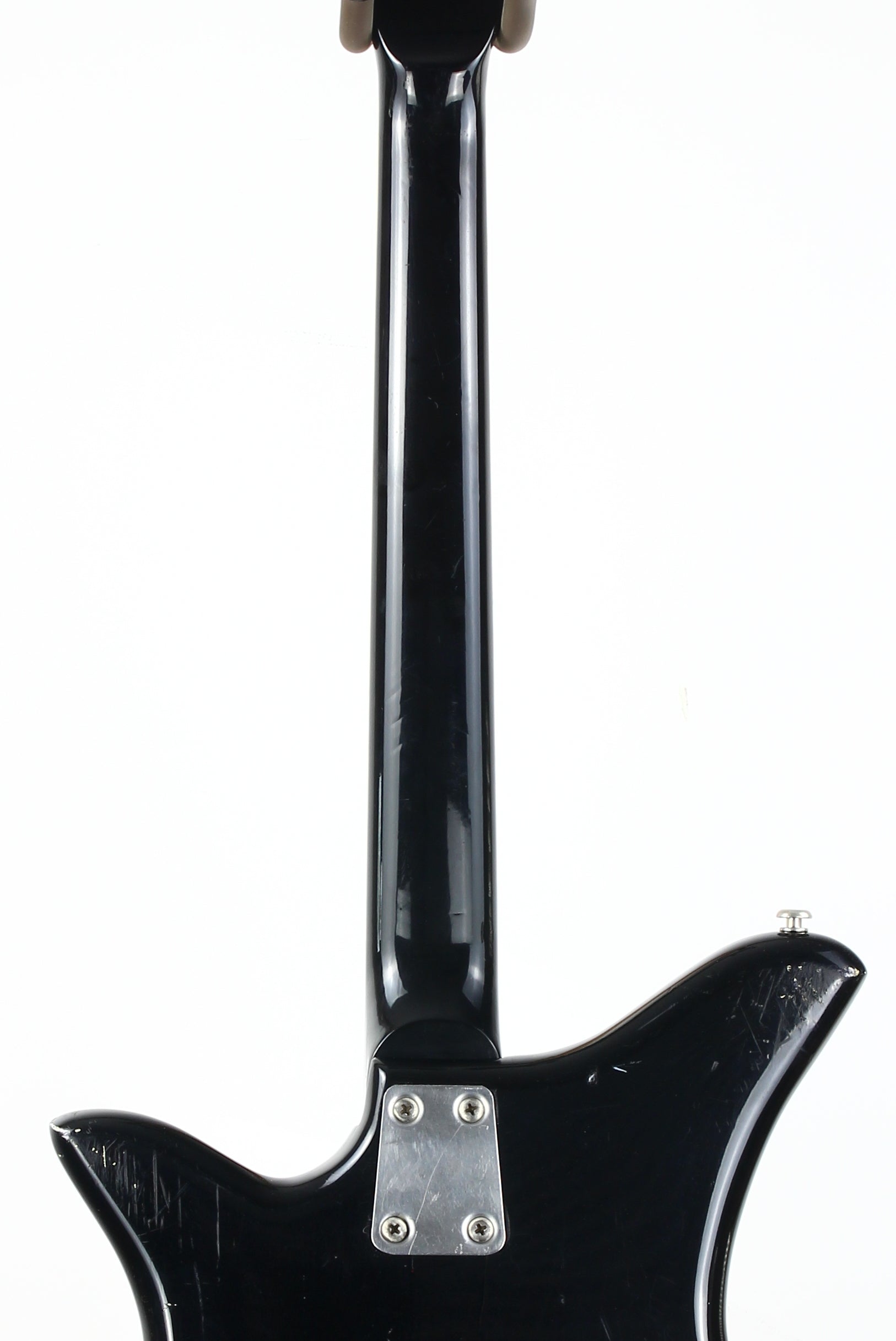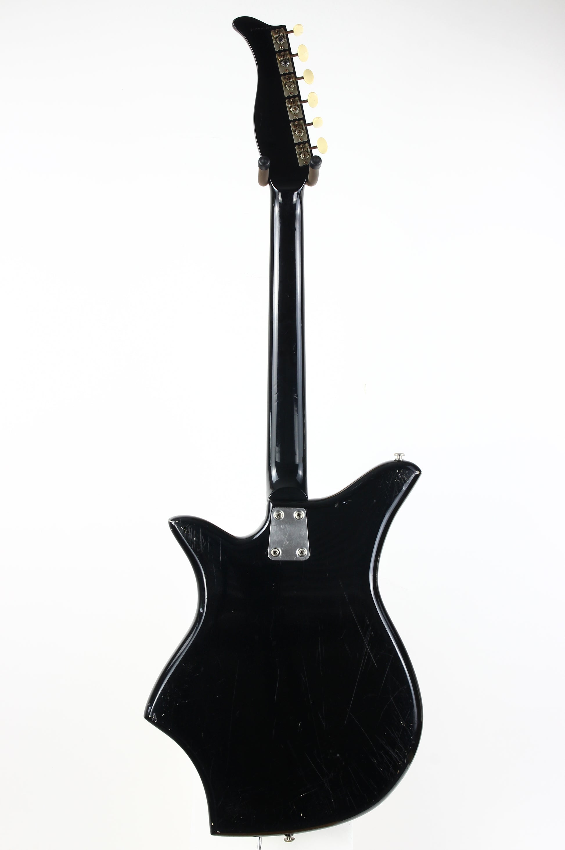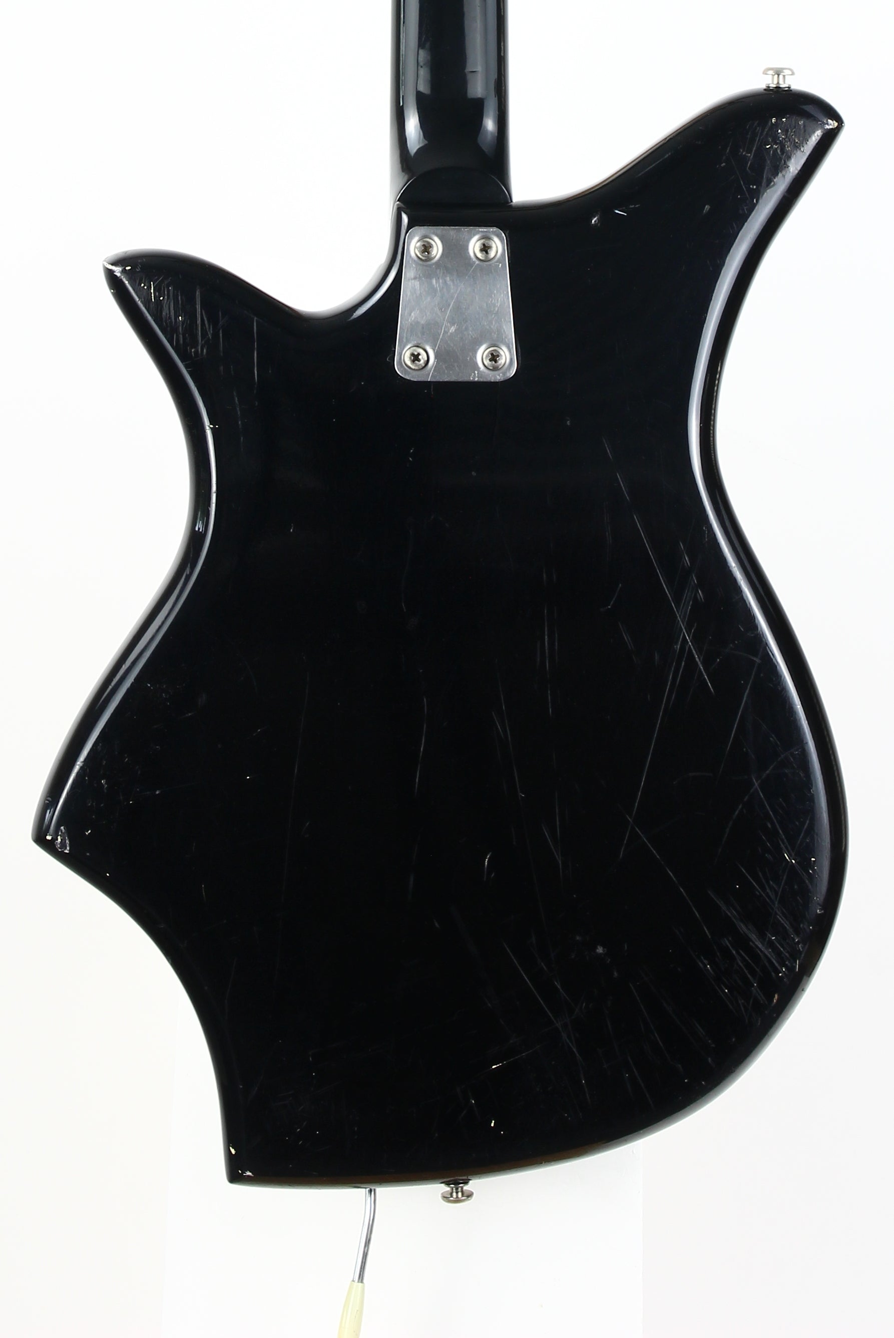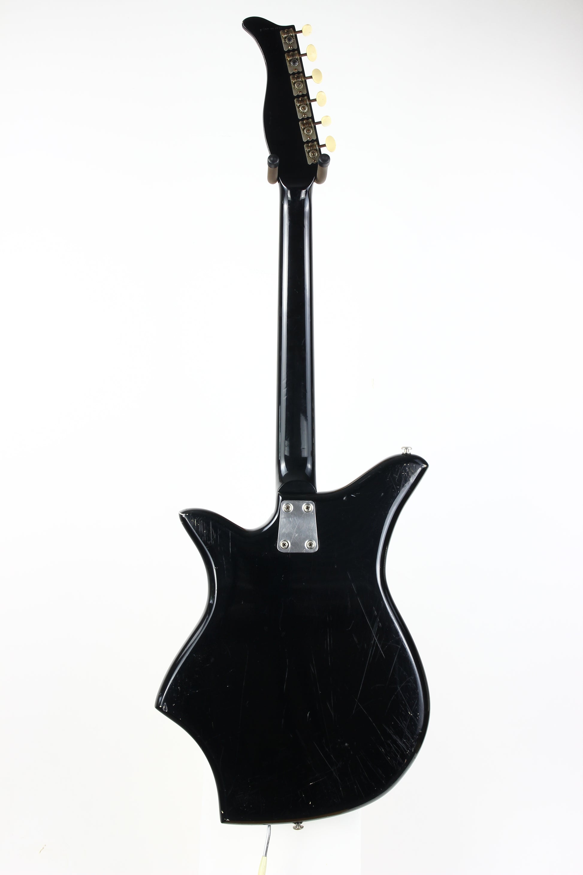 Here is a really cool and pretty rare BLACK Eko 700/V3. This is an Italian-made guitar from the early 60's. The 700 was their top model and this is the 3 pickup version. They also made a 4 pickup model 700/V4 and 2-pickup model 700/V2. The guitar is reasonably clean but being black it does show some scratches and light dings here and there. Please see photos for condition. The bridge, neck plate, and some pickguard screws are the only changes that we could find. Comes with a hard case and all the case candy as shown including original EKO tags! Plays easy and sounds great!