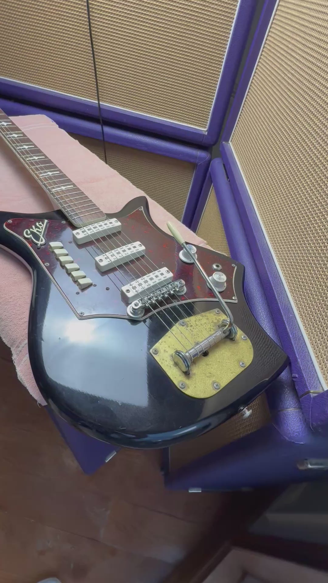 1962 EKO 700 3V Vintage Made in Italy Guitar RARE BLACK Tortoise Guard