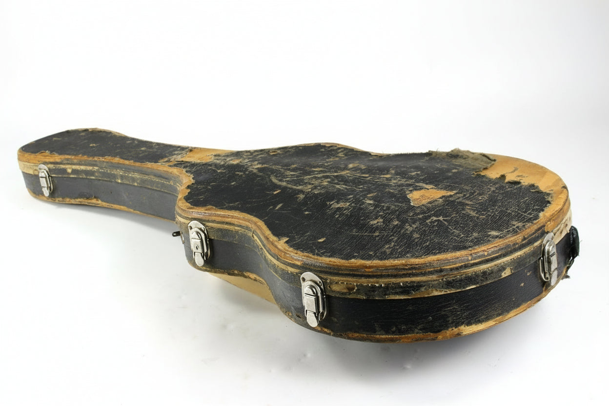 Cosmetically, it shows plenty of wear and tear throughout, along with a beat-up original hard case (missing the handle). But the important stuff is right: