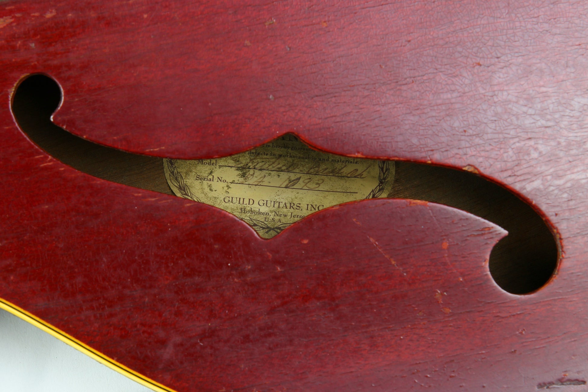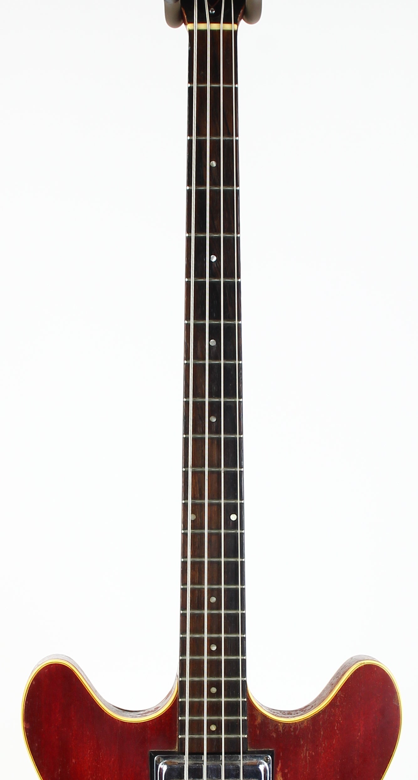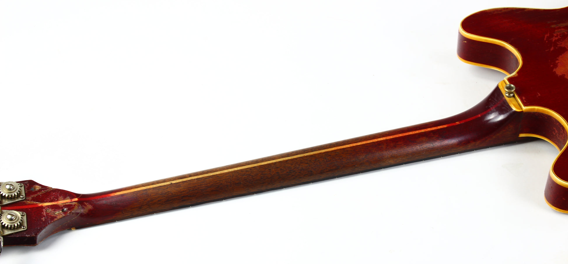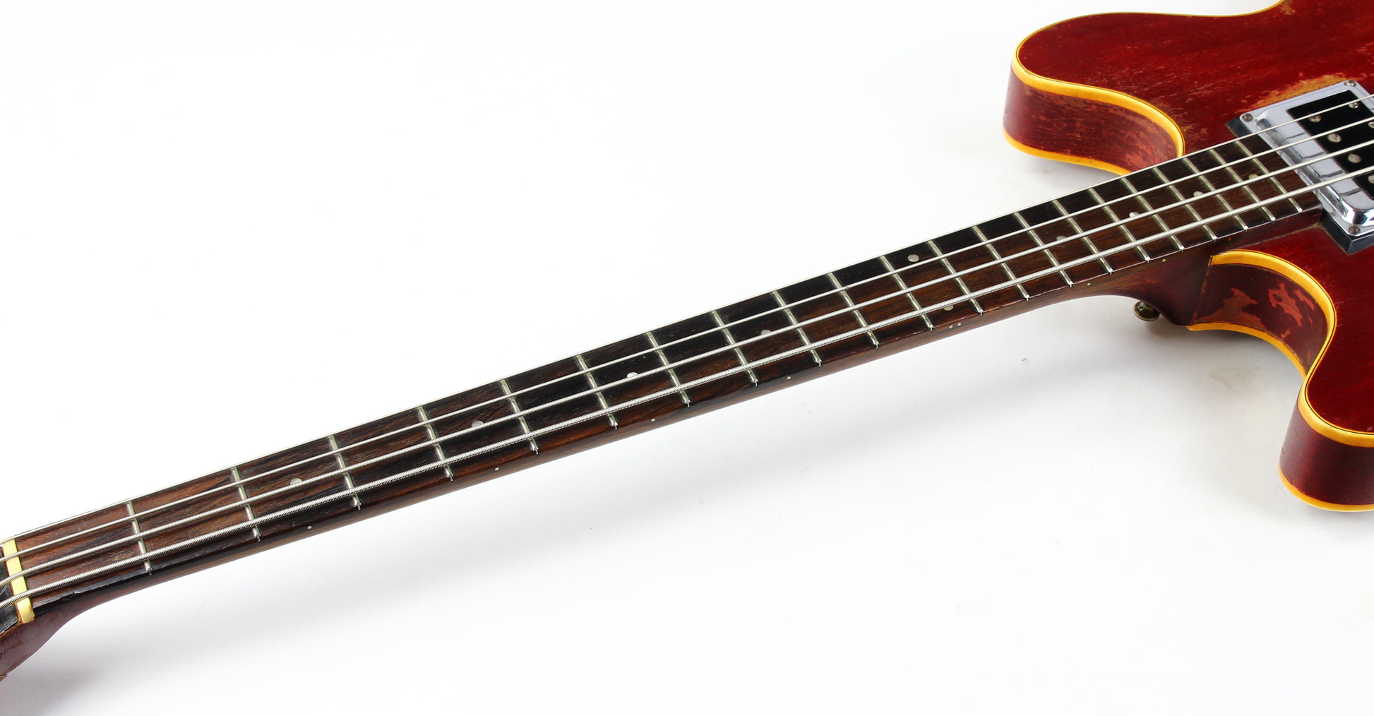 Here’s a cool 1967 Guild Starfire I in Cherry Red with the original Hagstrom/Guild Bi-Sonic pickup—and it absolutely roars. This one is firmly player-grade due to an old headstock repair, but it’s stable, functional, and has clearly been holding up well for decades.