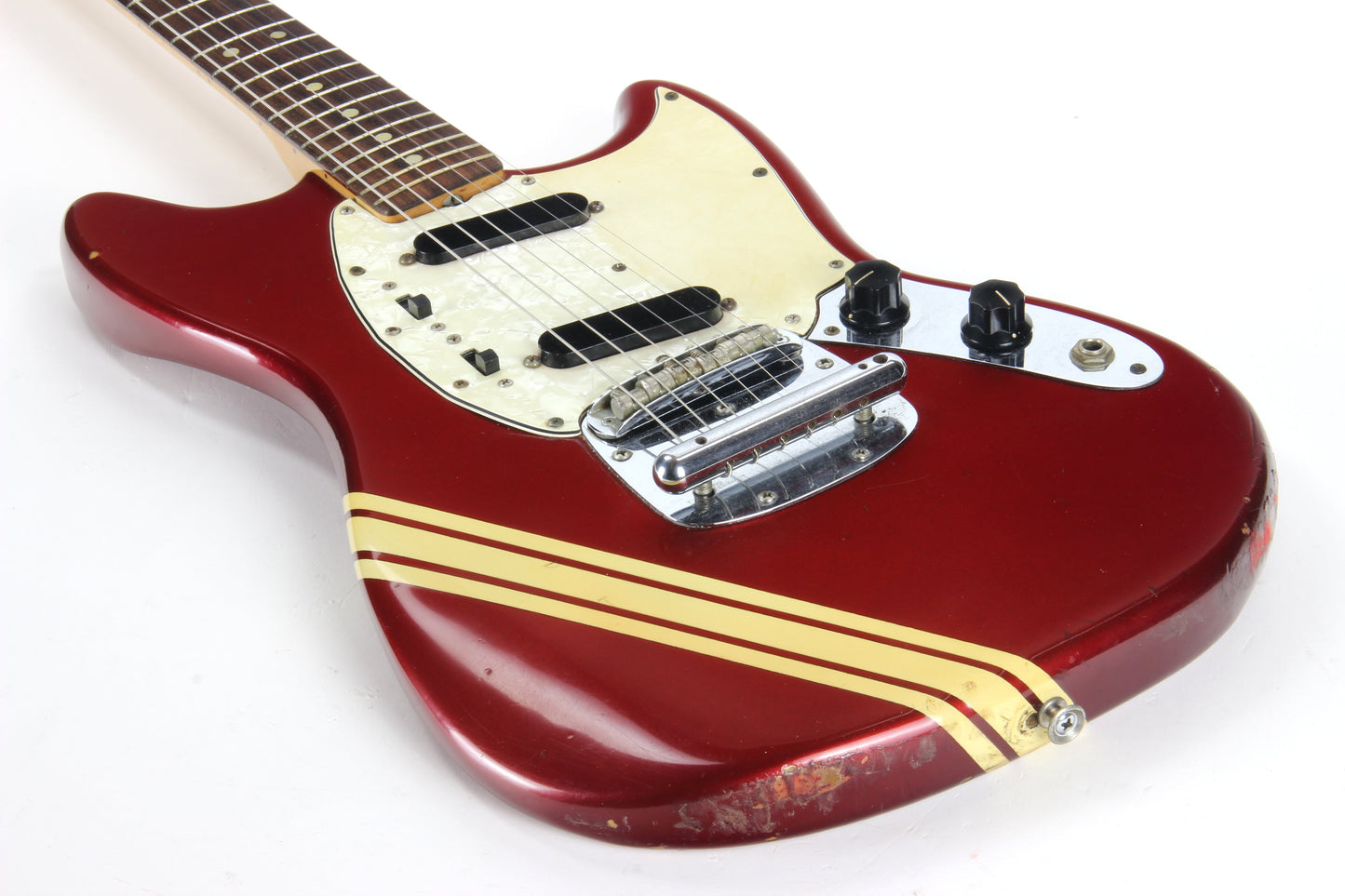 1974 Fender Competition Mustang Candy Apple Red w/ Racing Stripe -- Vintage 1970's Guitar