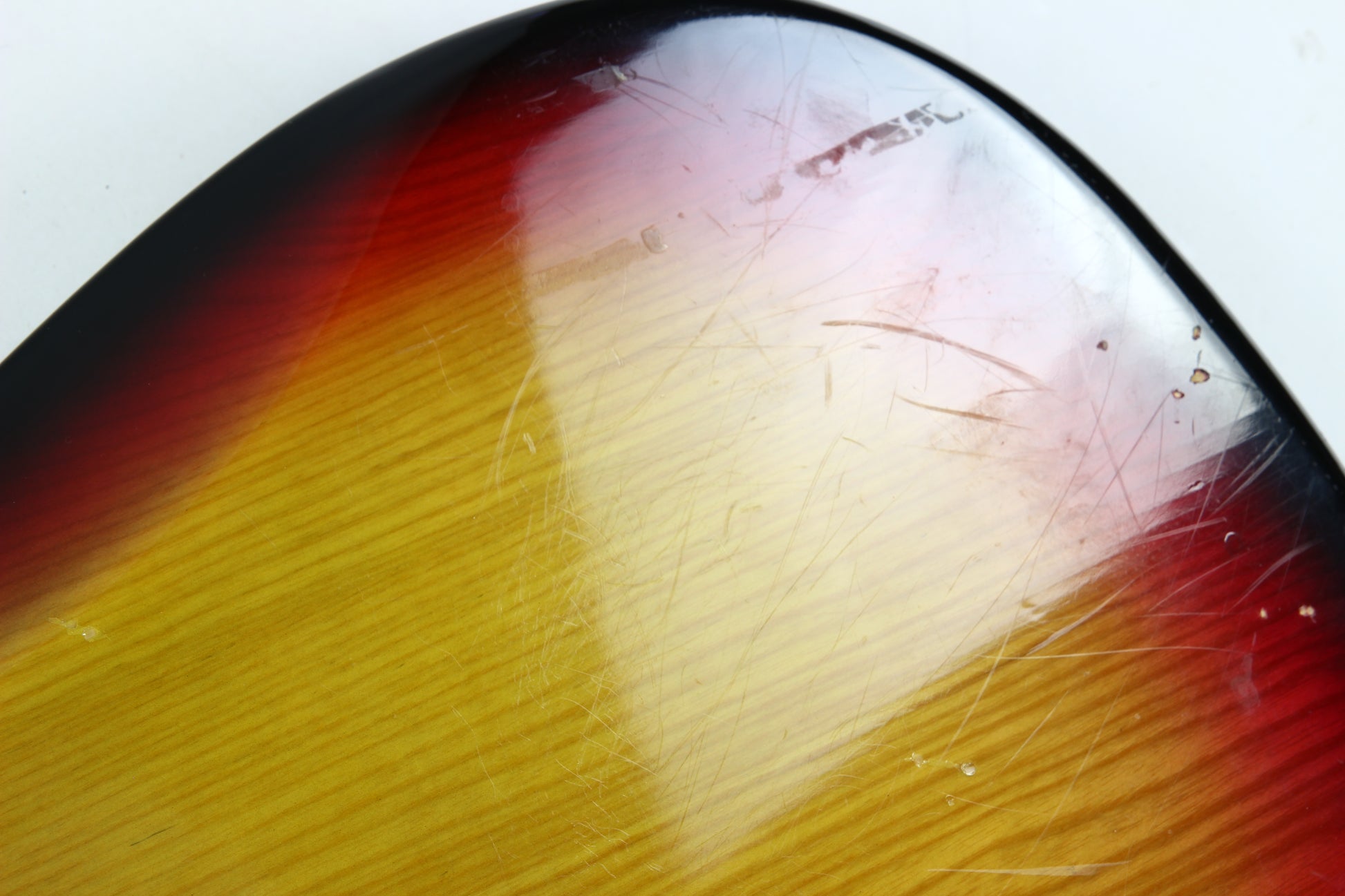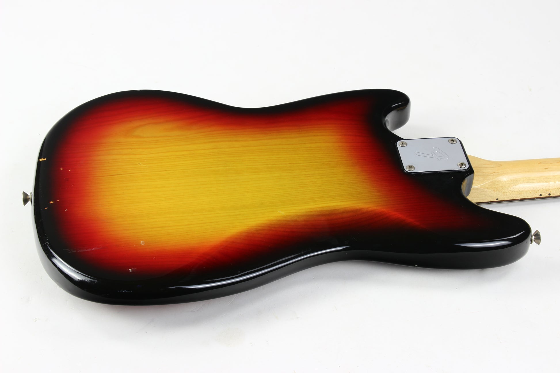 The guitar is in very good plus condition, showing less-than-typical wear for a late-’70s Mustang. You’ll find some small dings and scratches as shown, but it’s a very clean and presentable example overall. The sunburst is vivid and unfaded, and the guitar plays and sounds just like a good vintage Mustang should.