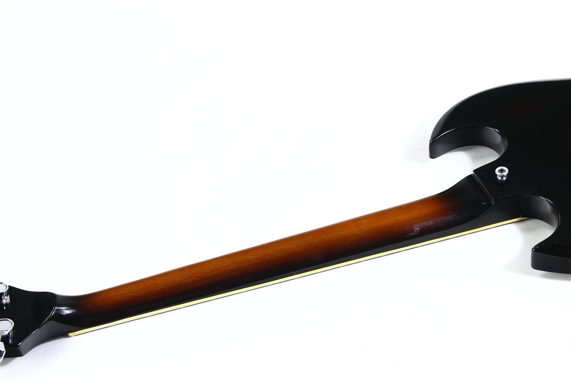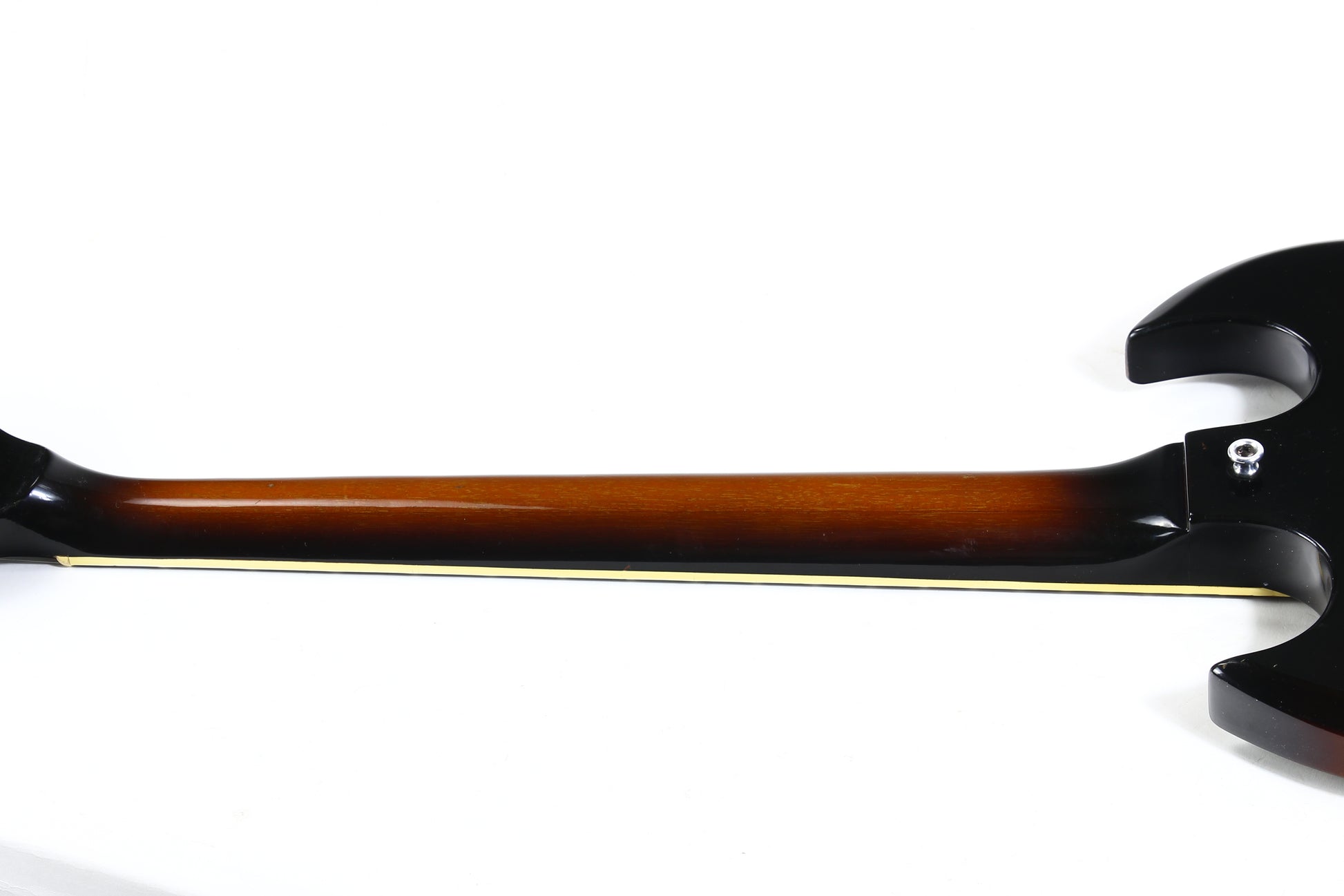 This is a fairly clean 1978 SG Standard in rare Tobacco Sunburst! 100% Original and a very nice playing and sounding guitar. Easy to play and very fast-playing neck with the narrow nut width. The guitar is in excellent condition overall with some light indentations here and there, but is very presentable. There is a small piece of the neck pickup ring (plastic) that broke off as shown. Comes with a non-original case as shown. Really nice vintage 1970's Gibson SG that is ready to be rocked!