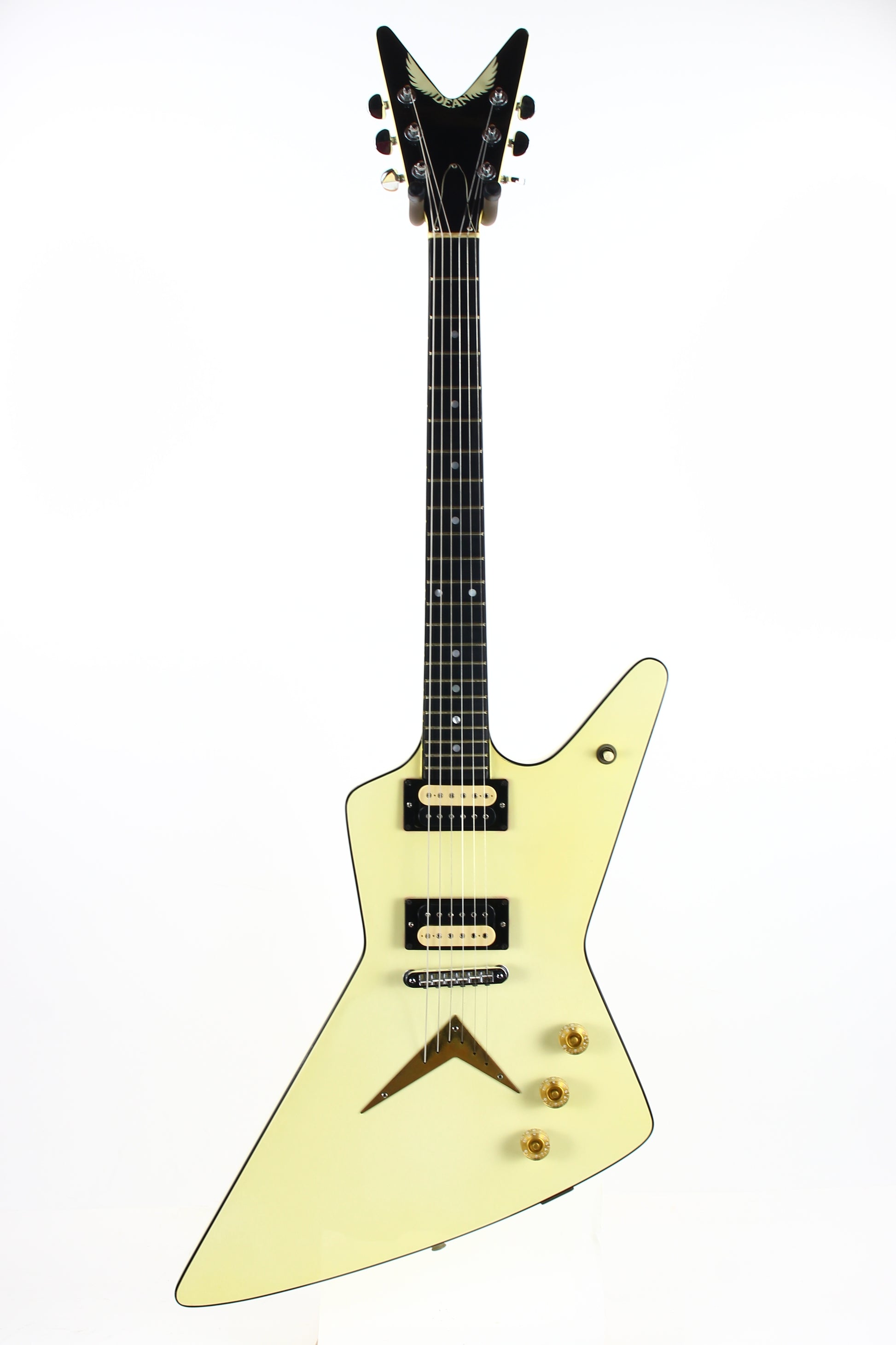 Here is a rare and desirable VINTAGE 1980 Dean Z Standard in White with all black binding! It's actually a very clean guitar overall too. These are getting extremely hard to find in this classic bound neck AND bound body. Bound ebony board, custom color White finish, Schaller tuners, DiMarzio Super Distortion humbuckers... These were big in the late 70's and early 80's and were amongst the finest designs including those from Hamer and BC Rich!! Check out our website for more photos and other important info!