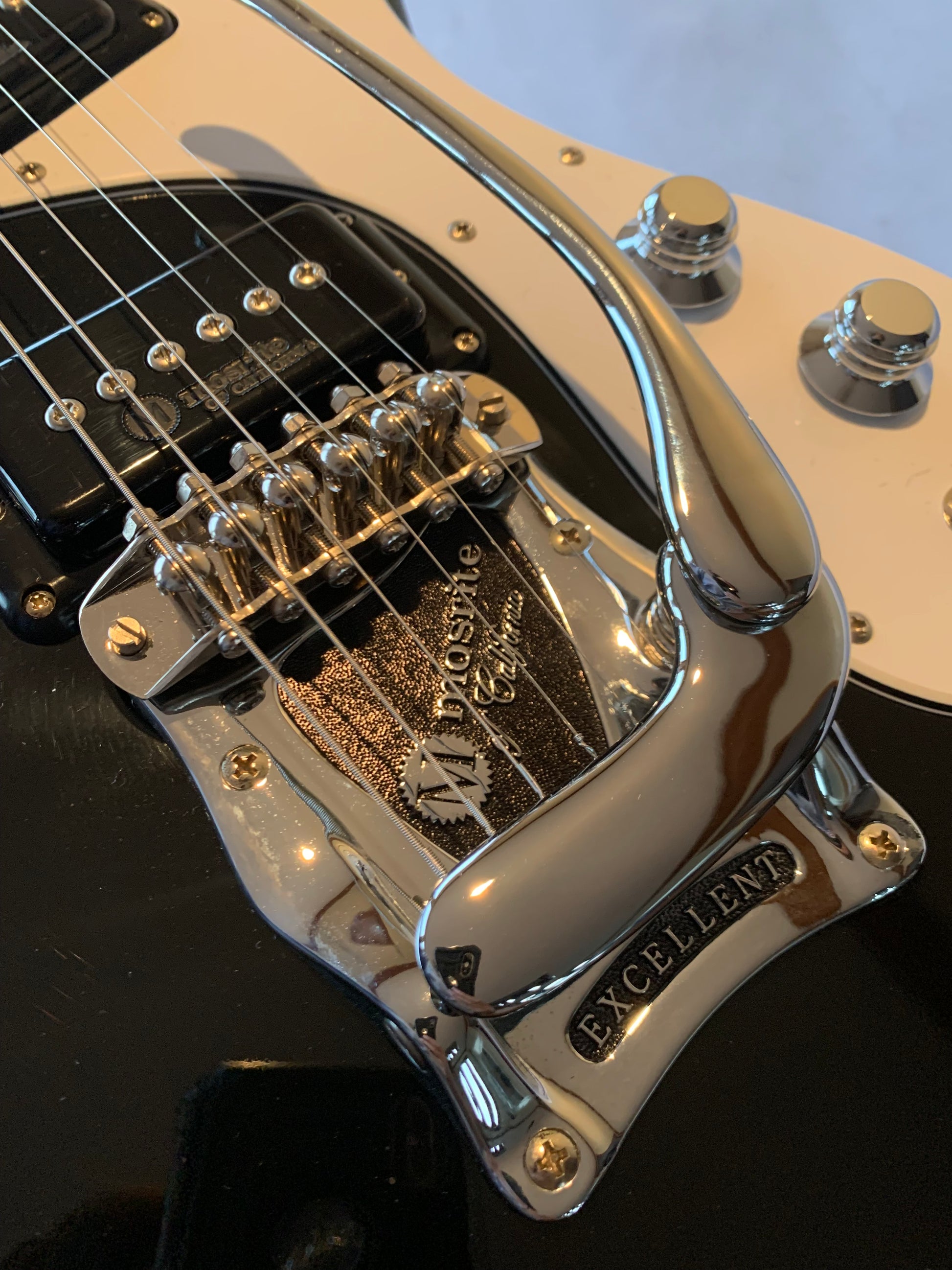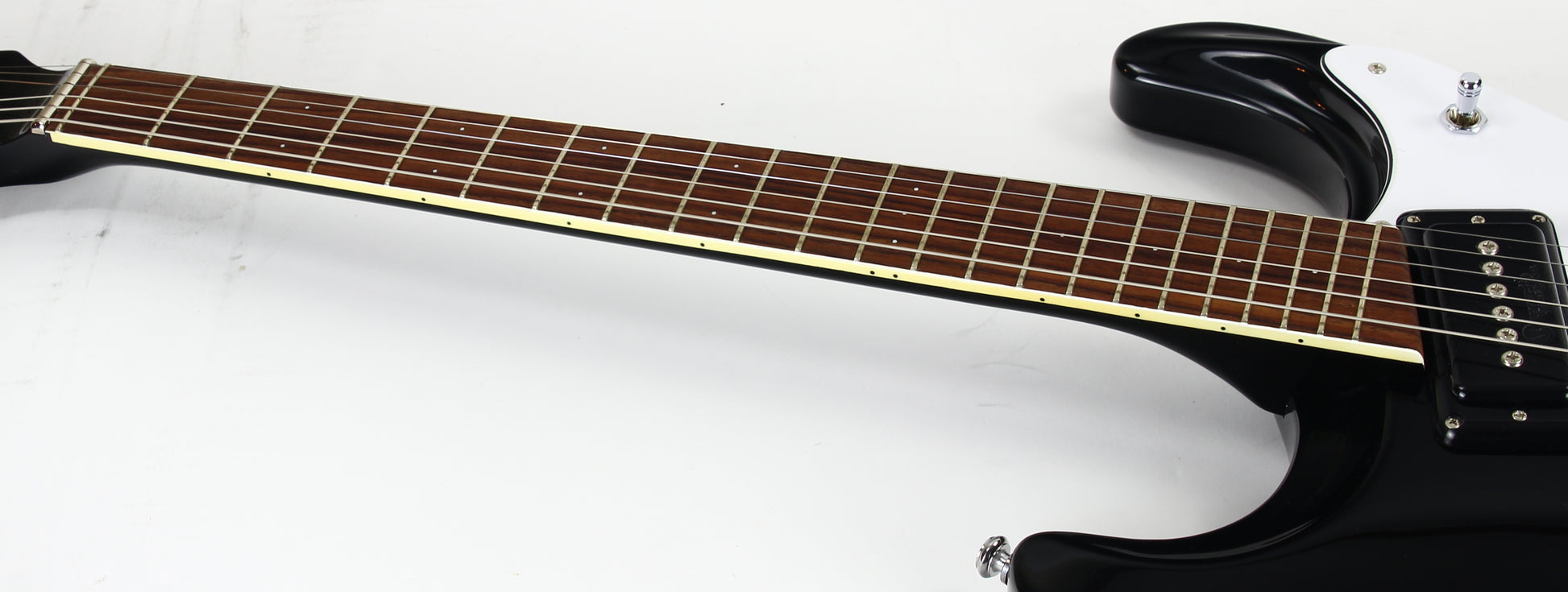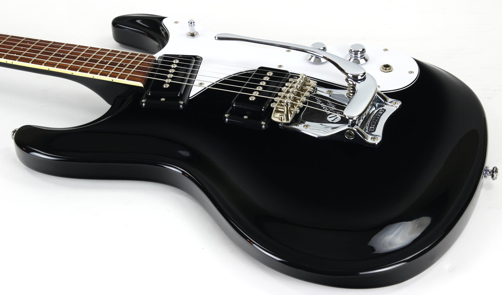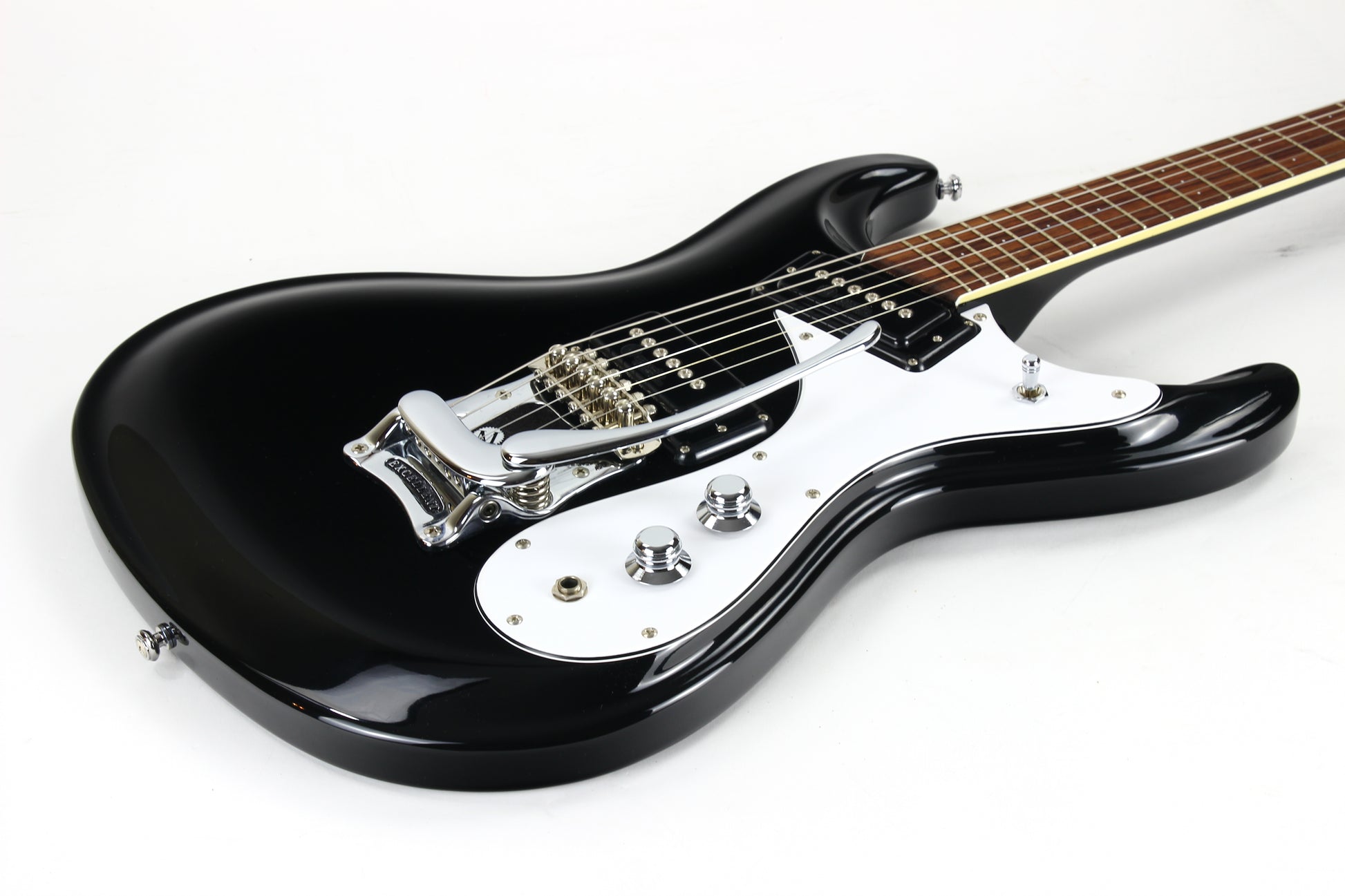 Very cool model from Mosrite. This is from the Excellent series from the 1990's. Black Ventures model. It plays easy and sounds very good! It's in excellent condition. Just the lightest traces of use but is a great example and is complete with the original hard case etc... Check out our website for more photos and other important info!
