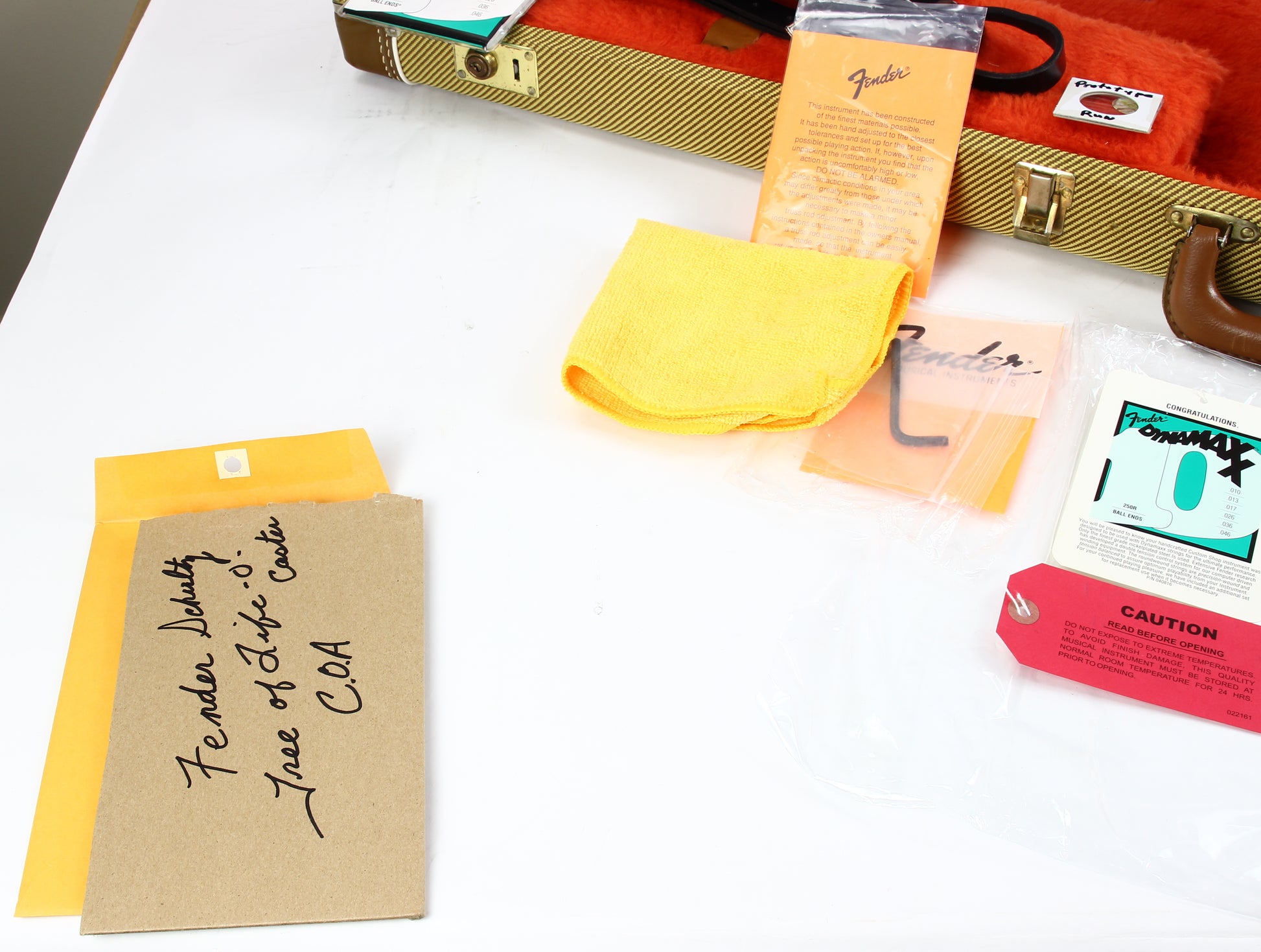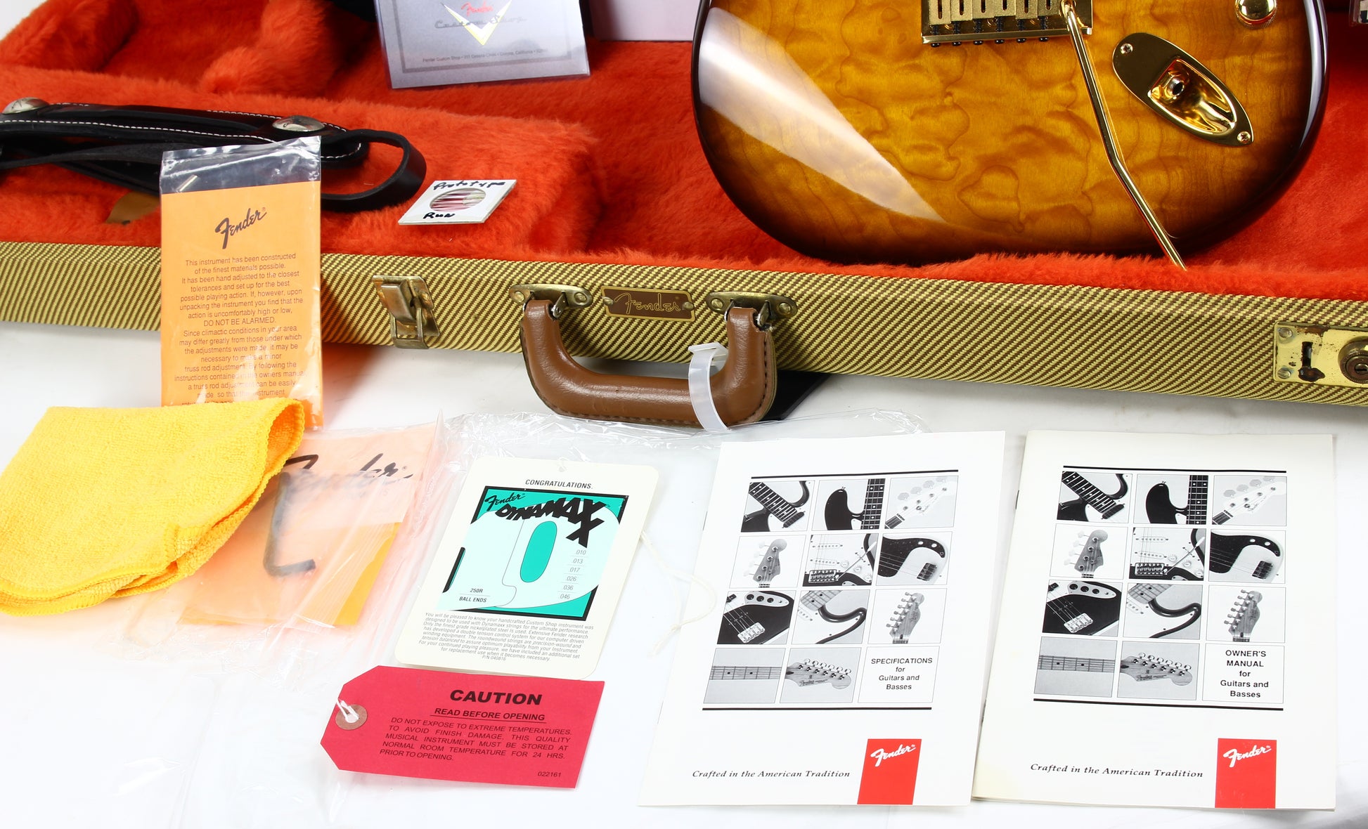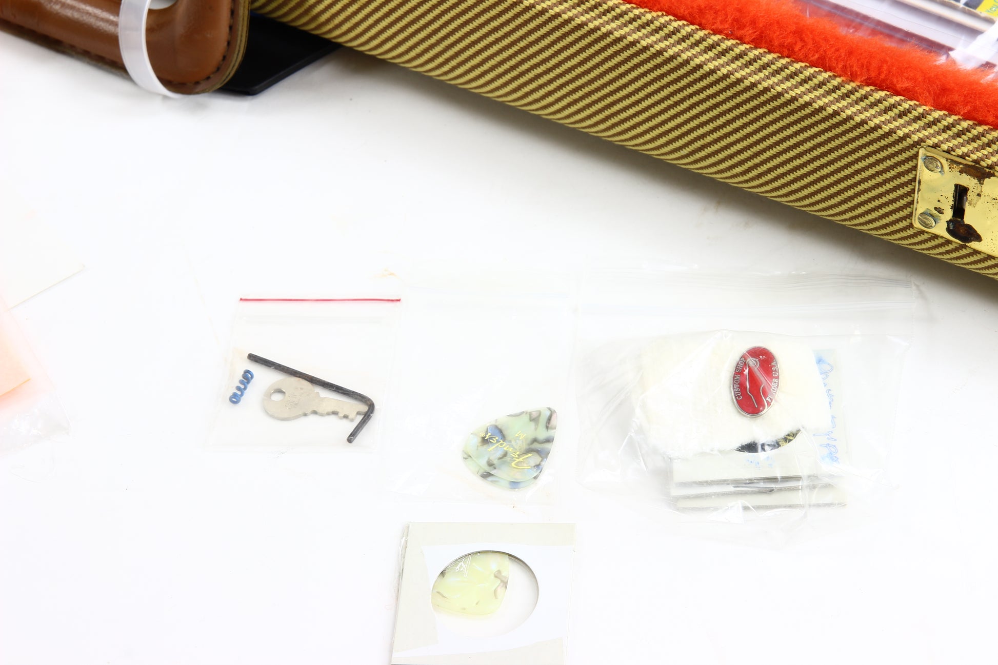Here is an amazing and desirable piece of early Fender Custom Shop history. This 1993 is collector-grade and comes with tons of paperwork and extras. The guitar is in beautiful condition, easily near mint. Really nice quilted maple top and back. Comes with original hard case, COA, emails from JW Black discussing this early model, tons of early CS case candy... Great example that looks, plays, and sounds great!