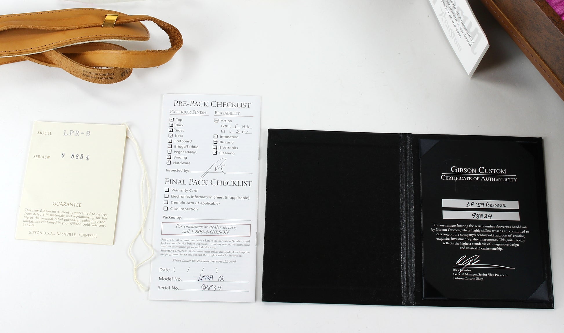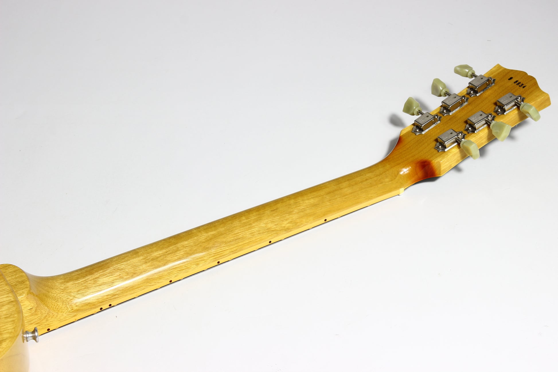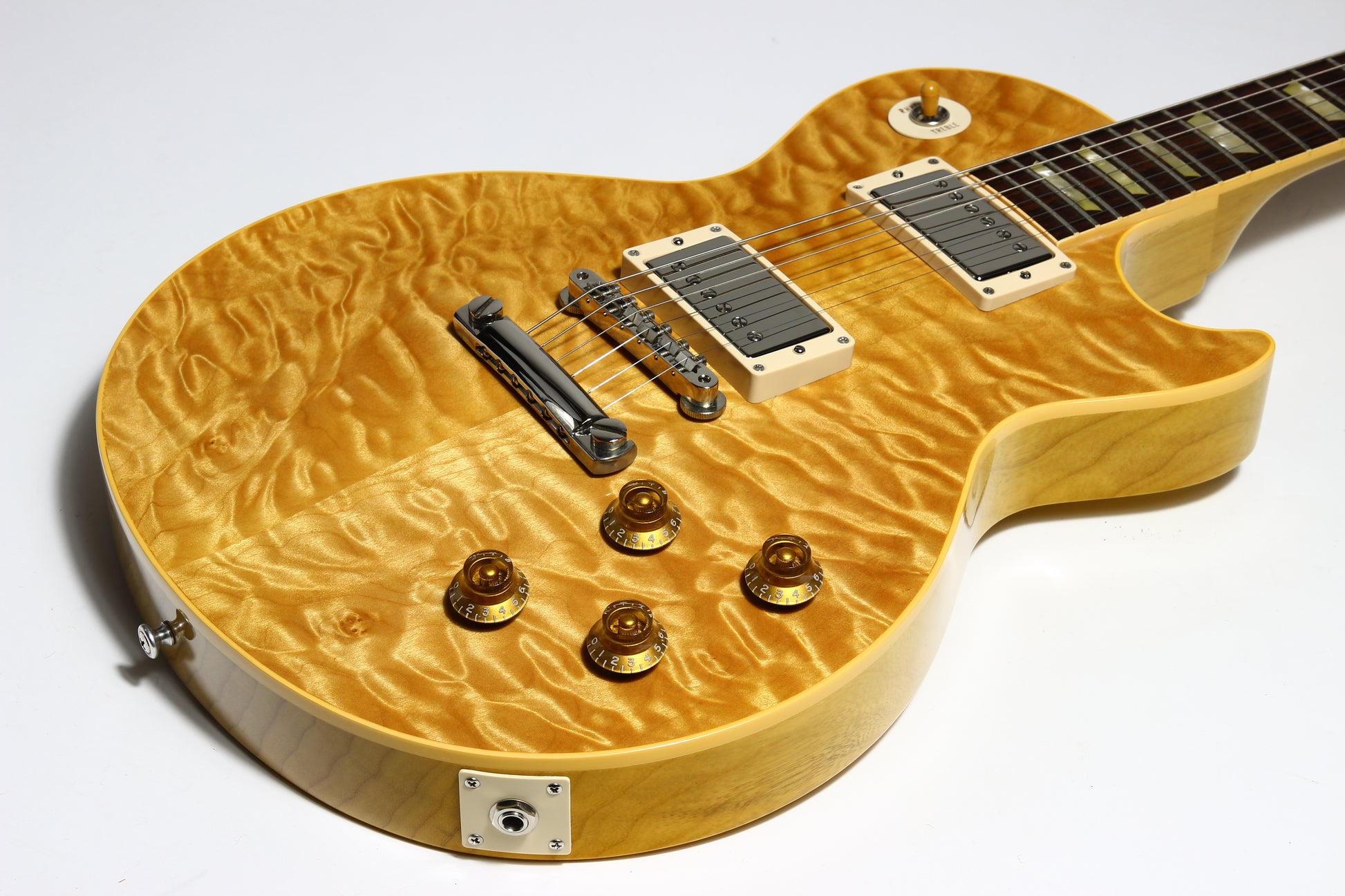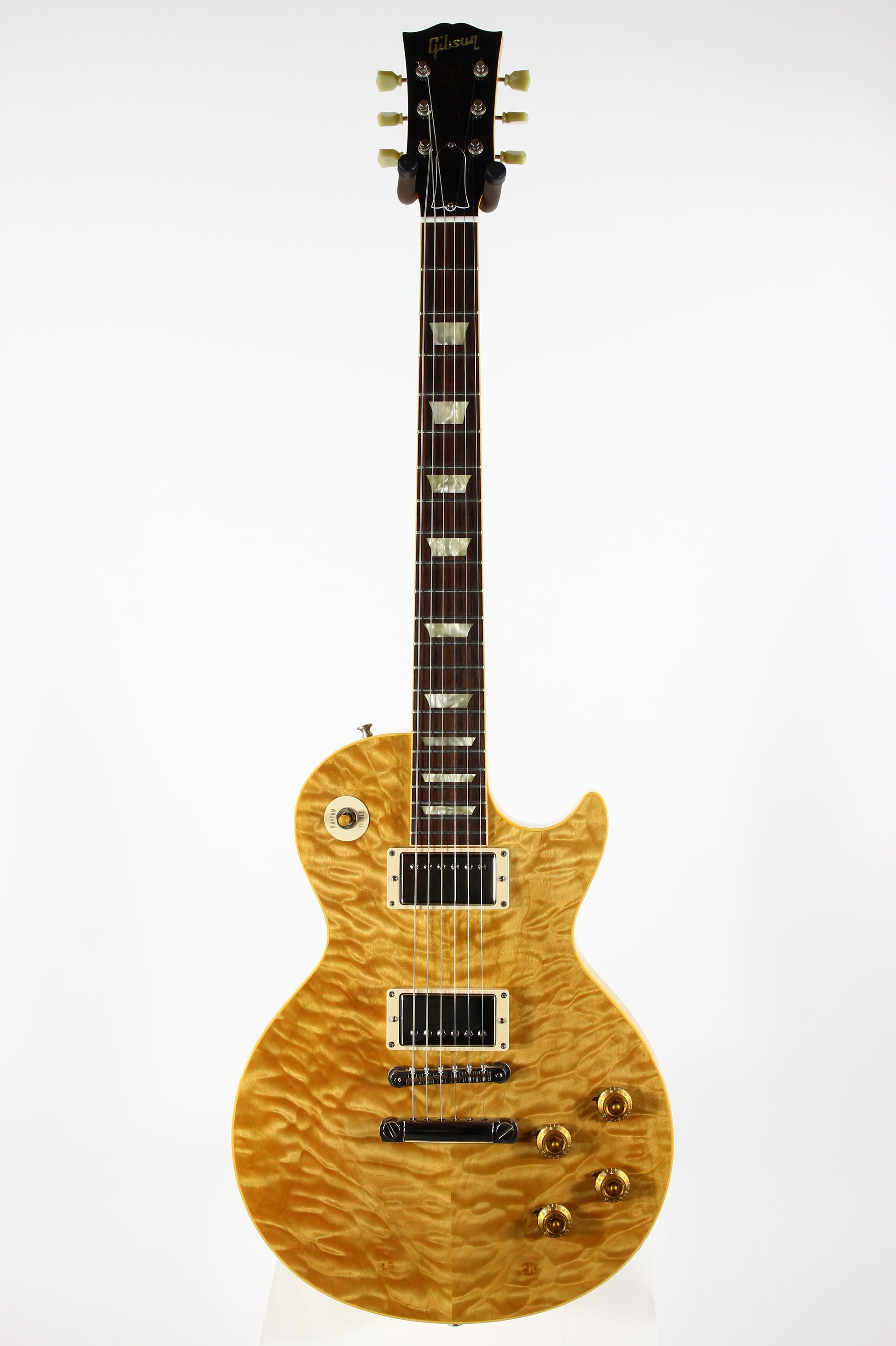 Here is an amazing and extremely rare Quilt Top R9 with all KORINA body! Supposedly 1 of 6 made but we only read that online so not confirmed. Gibson Custom Shop at its finest. Very collectible Les Paul. This one has a CRAZY Quilt top and is very strong. Comes with the original triangle hard case and all the case candy as shown. Plays easy and sounds great! The guitar is minty besides some marks from a guitar stand on the headstock in the usual spot. These were made in extremely numbers. Of course it's very lightweight at 8 lbs even to make it a perfect example!