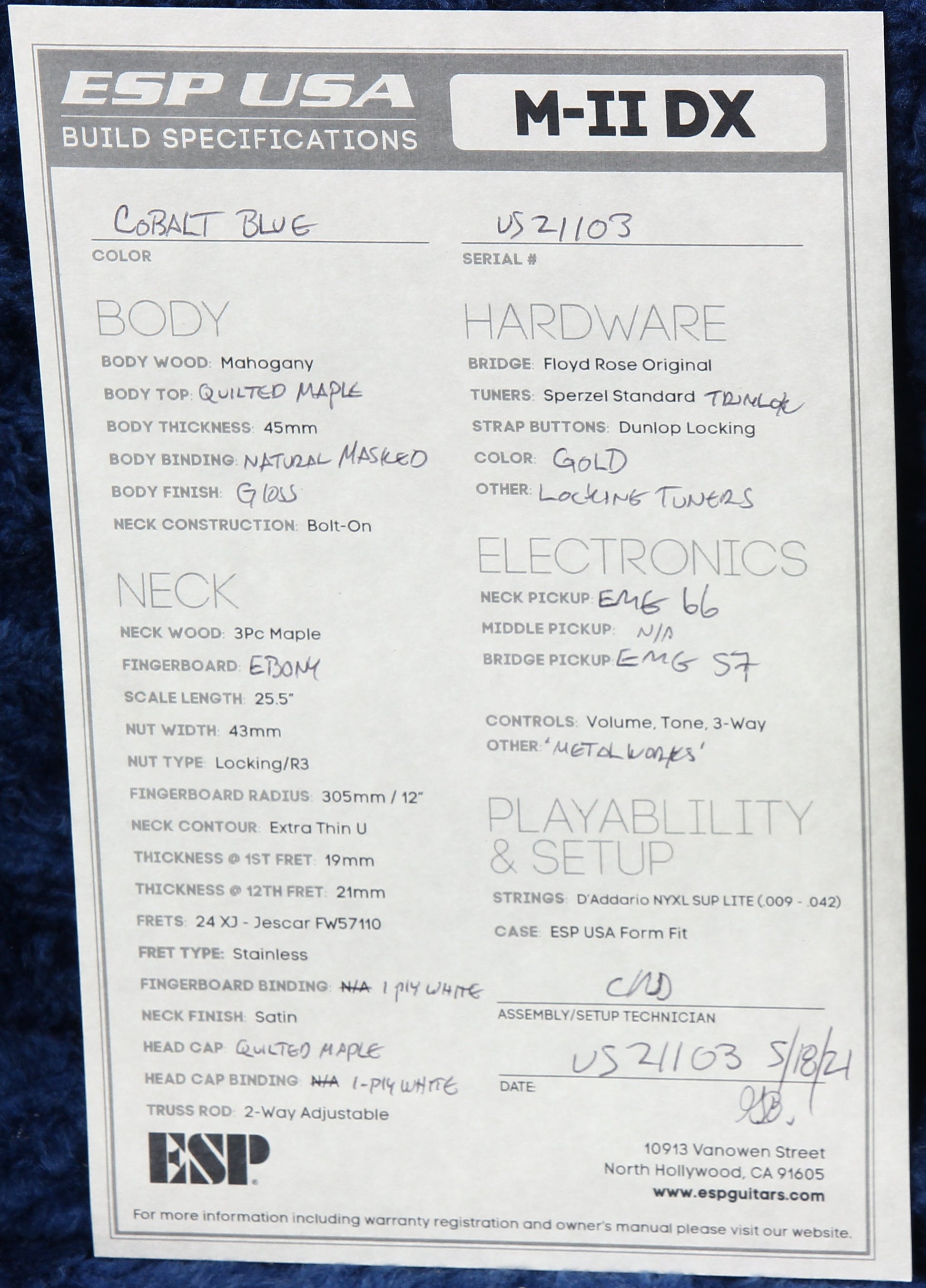 2021 ESP USA M-II DX Cobalt Blue Floyd Rose Original
