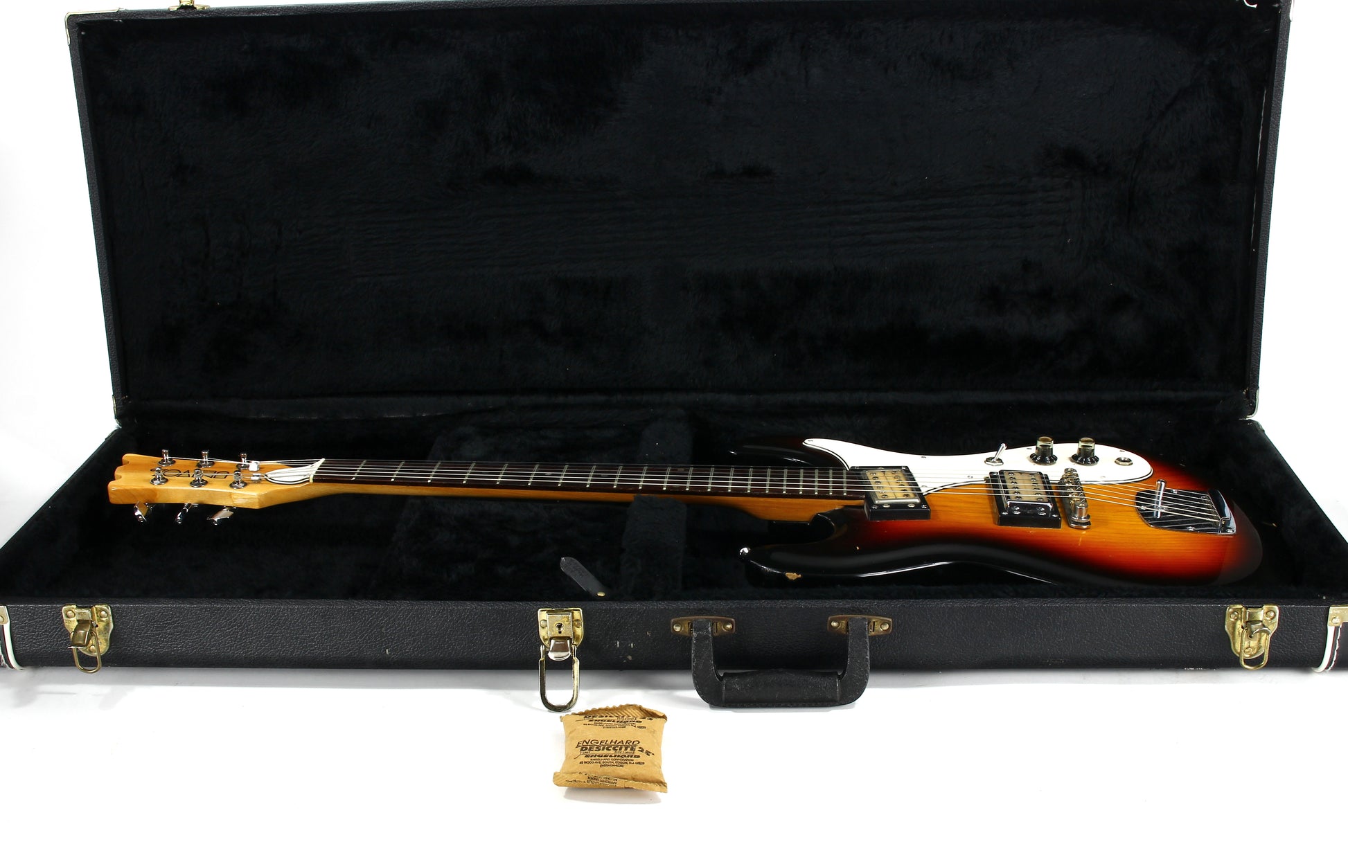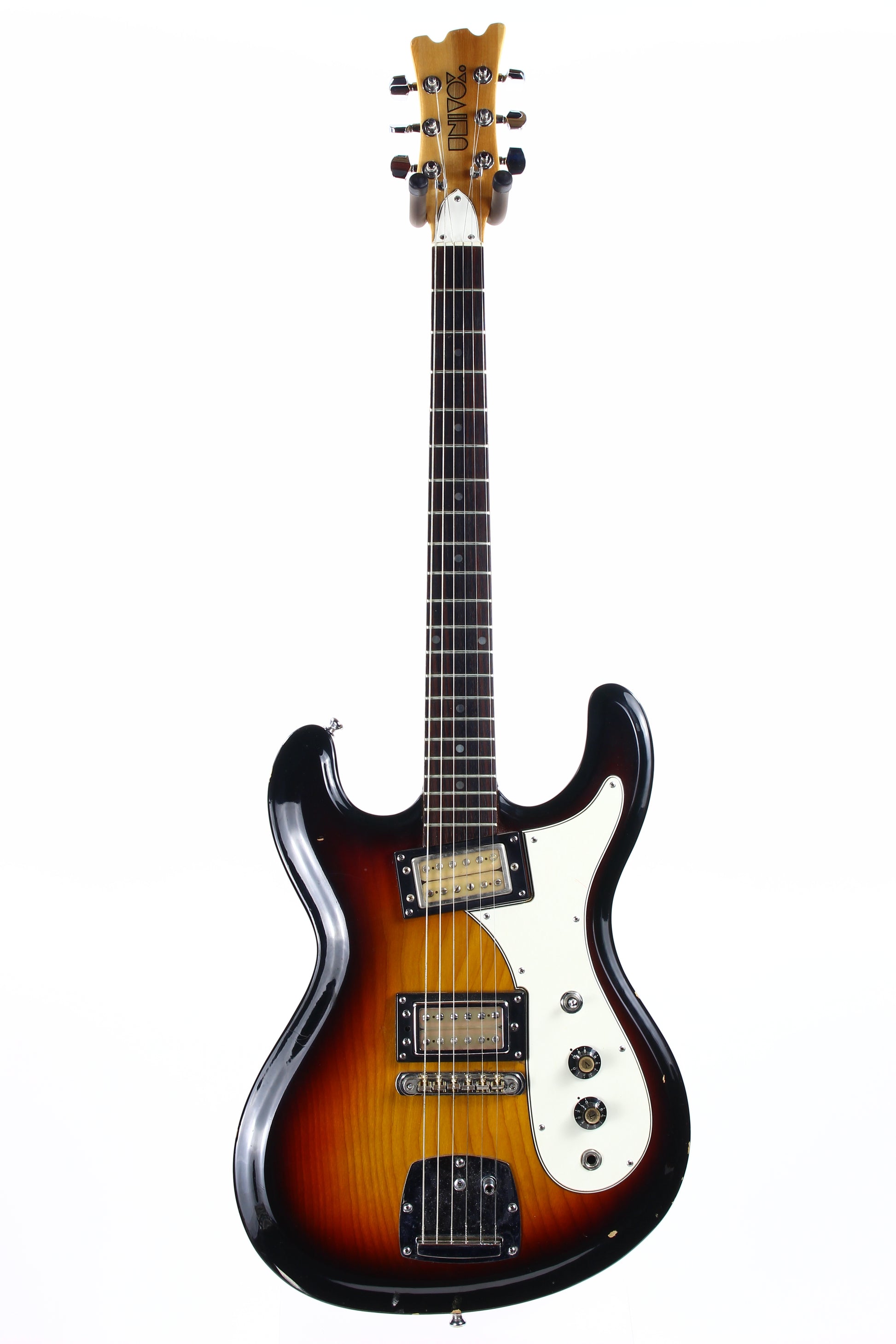 c. 1974 Univox Hi-Flier Phase III -- Kurt Cobain Nirvana, Sunburst, Humbuckers, w/ Hard Case! 1970's High Flyer Mosrite Copy