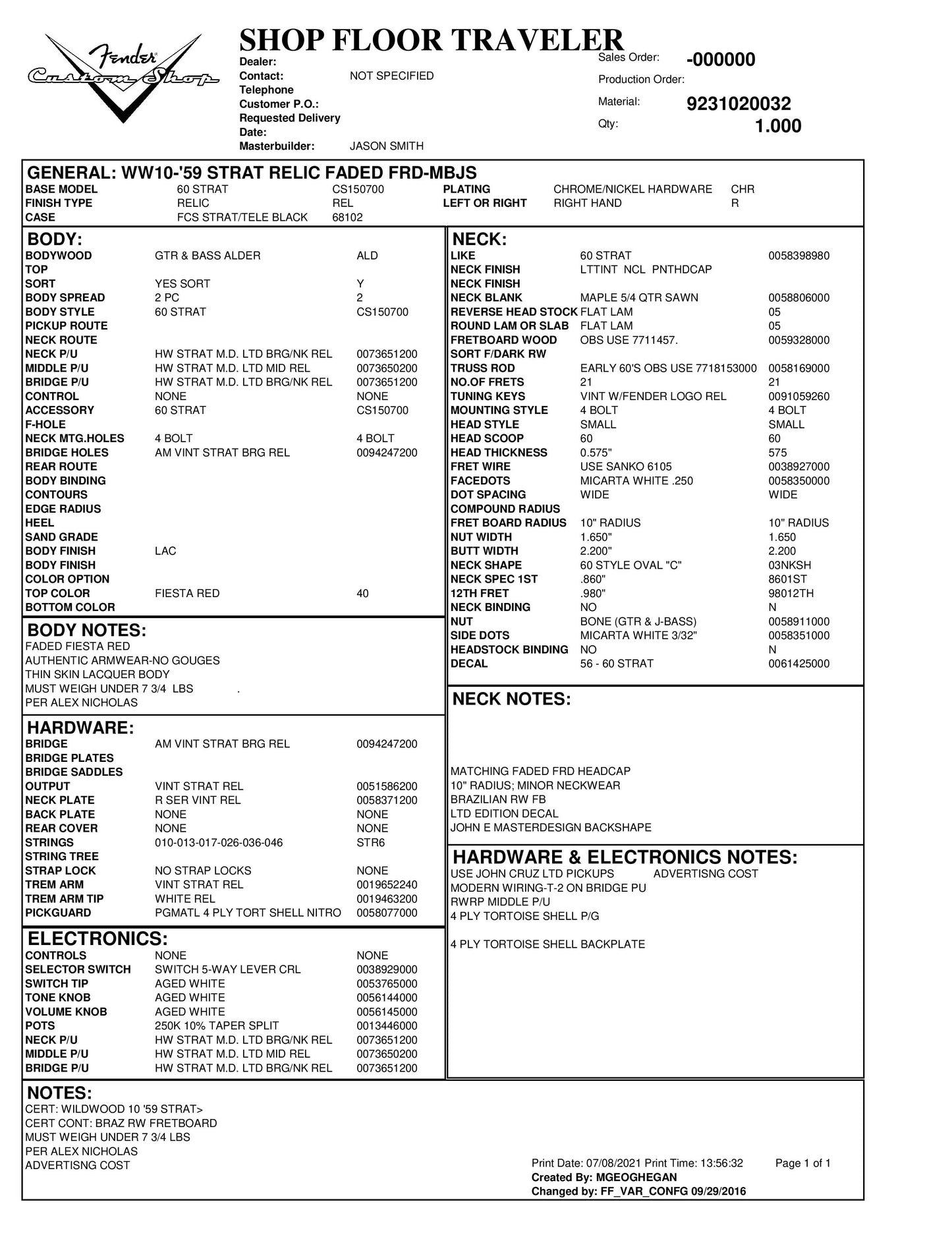 Fender Custom Shop Brazilian Rosewood Masterbuilt '59 Stratocaster Relic - John Cruz Pickups, English Neck, Jason Smith WW 10 Wildwood
