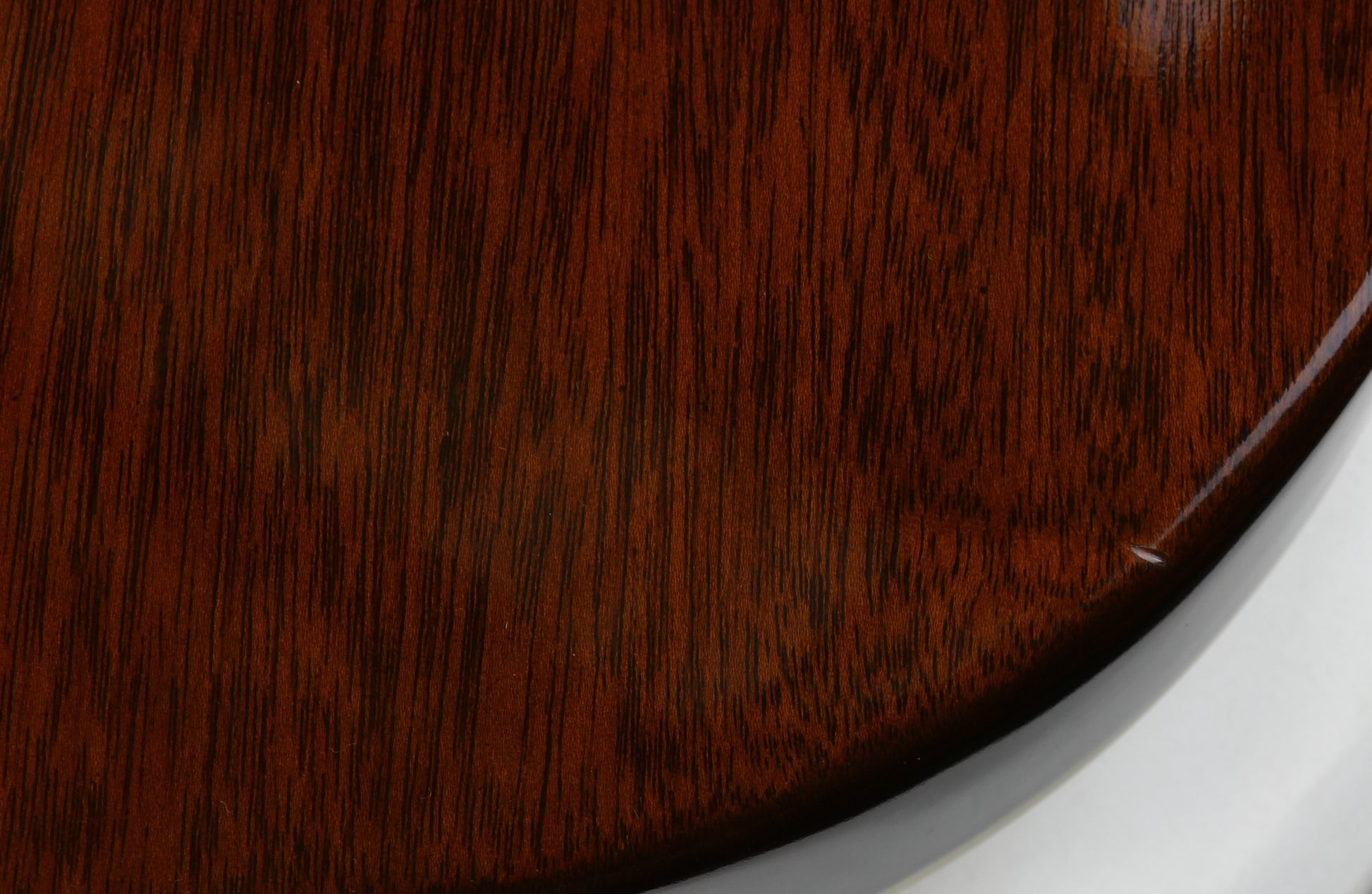 Finish: High-gloss nitrocellulose lacquer highlighting the dramatic quilt figuring